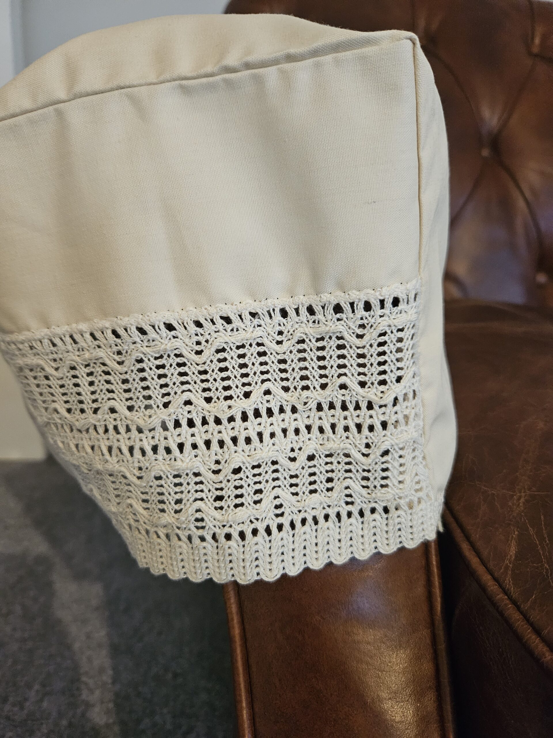 Protect your furniture and enhance the look with these beautiful arm cap covers. They are the perfect accessory for your sofa or armchair.  This non-slip lace is a lovely cream colour with a fancy lace detail, non-slip styles are best suited for more textured/fabric furniture.  100% cotton face with a white polyester lining. Machine washable at 30ºc.  Made in the UK. Matching chair backs also available.